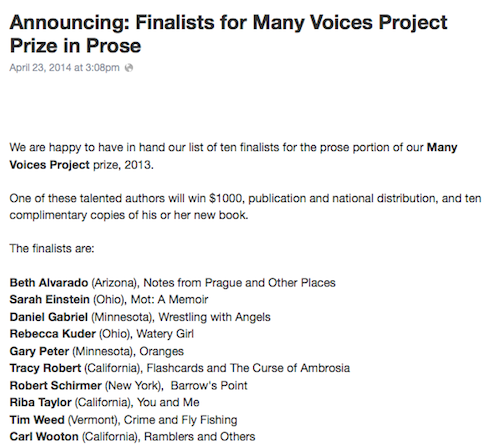 I’m sorry now I didn’t post this here the very evening I heard Suzzanne’s message on my voicemail. It was after Laurie and I spent that day writing for over six hours. I’m convinced it’s all connected. Listening to my messages, tired at the end of that intense day of writing, I found out my book manuscript, You and Me, has been selected as one of ten finalists for the Many Voices Project at New Rivers Press. It still feels like a dream. I didn’t post the news right away because Suzzanne thought they would be gathering photos of each finalist, making an announcement on their website. I waited to tell you about it because I wanted to be able to offer up the link to that page, make it all real. Now it makes me sad I didn’t share the news while it was still hot, still streaking through my veins, the joy and the thrill, the incredible validation, the almost overwhelming gratitude. I don’t know exactly how many entries there were. Maybe 300 or so, Suzzanne thought. And it looks now as though they may not get a chance to post us on their website before the winner is selected, which could be at the end of this month. (They are a university press, run by a small staff, so I understand this. It’s likely they are already accomplishing more than is humanly possible.) Still, I love that they let us know right away, let each of us savor being selected while every one of us still has a chance of winning. I think it is a great kindness. I pray to keep my joy about this, to hold fast to my gratitude and to the deep validation in it no matter how things unfold. If my manuscript wins, I will rejoice like nobody’s business, leaping tall buildings in a single bound. And this time I promise I’ll tell you right away.