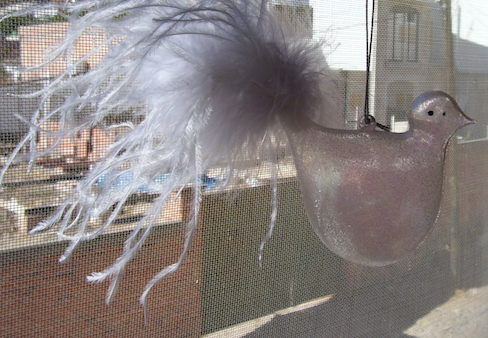 I think of the lights I laced along the curtain rod in my Ajijic apartment, looping down into the windows so people would see them from the street below. I remember the white glass bird hanging there, a photograph somewhere, the white tail feathers floating against the window screen. I think of the rounded yellow bird so like that white one, that hung on my shower rod with three glass hummingbirds in Santa Rosa, and the shock of the crash when the rod gave way that afternoon, nothing but glorious shards left in the bathtub. I think of the new glass rooster on my patio table, sunlight through the red glass of his comb, his tail, his wattles. It is my love of color and light that leaves me always reluctant to take down my Christmas lights. I left them up late in Ajijic, too, though I felt self-conscious about it there. Would this be another mark of my crazy estadounidense self? Here I don’t seem to care what my neighbors think of me, the solar lights still sharp and vivid in the hedge beside the gate at night.